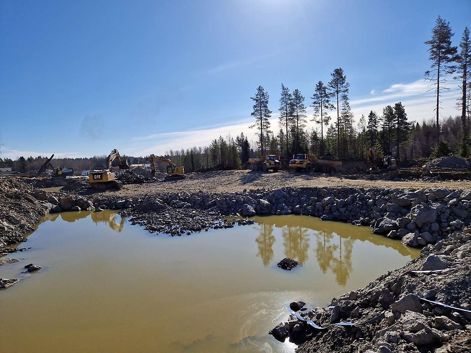 • Dagvatten från Öxbäcken och tillbaka mot Tomternavägen pågår från utloppet bakom Skogforsk. Leveranser av material läggs upp på en yta som vi har fått tillgång till av Skogforsk.