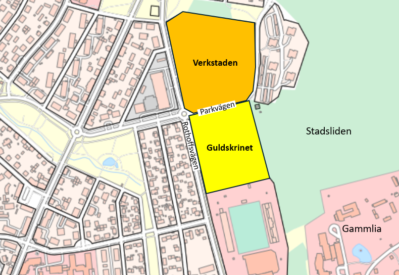 Den nya detaljplanen för fastigheten Guldskrinet 1, där simhallen låg, möjliggör cirka 450 bostäder samt möjlighet till verksamheter i bottenplan mot Rothoffsvägen och Parkvägen. Inom kvartersmark är det fyra olika aktörer som bygger ut bostäder: Boet Bostad, Lerstenen, NNJ + Rekab och Skanska + Mofab.