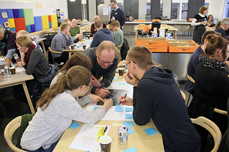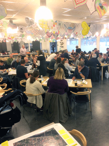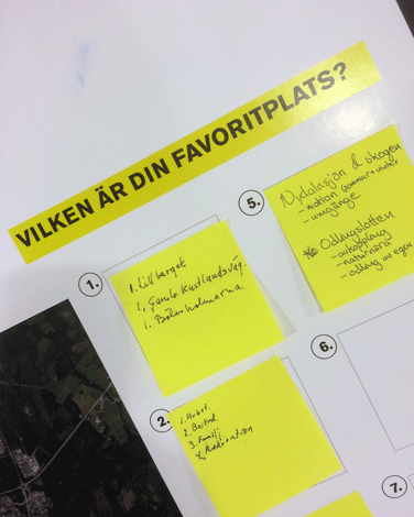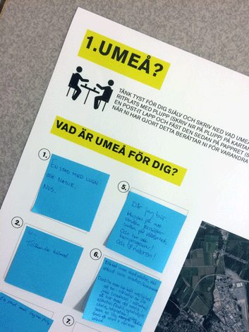 Drygt 40 personer kom till Idéforum 1. Det innehöll olika workshops där deltagarna samtalade och redovisade vilka platser man tycker om i Umeå, vad är viktigast för oss i framtidens Tomtebo, och vilka möjligheter Tomtebogård har.
