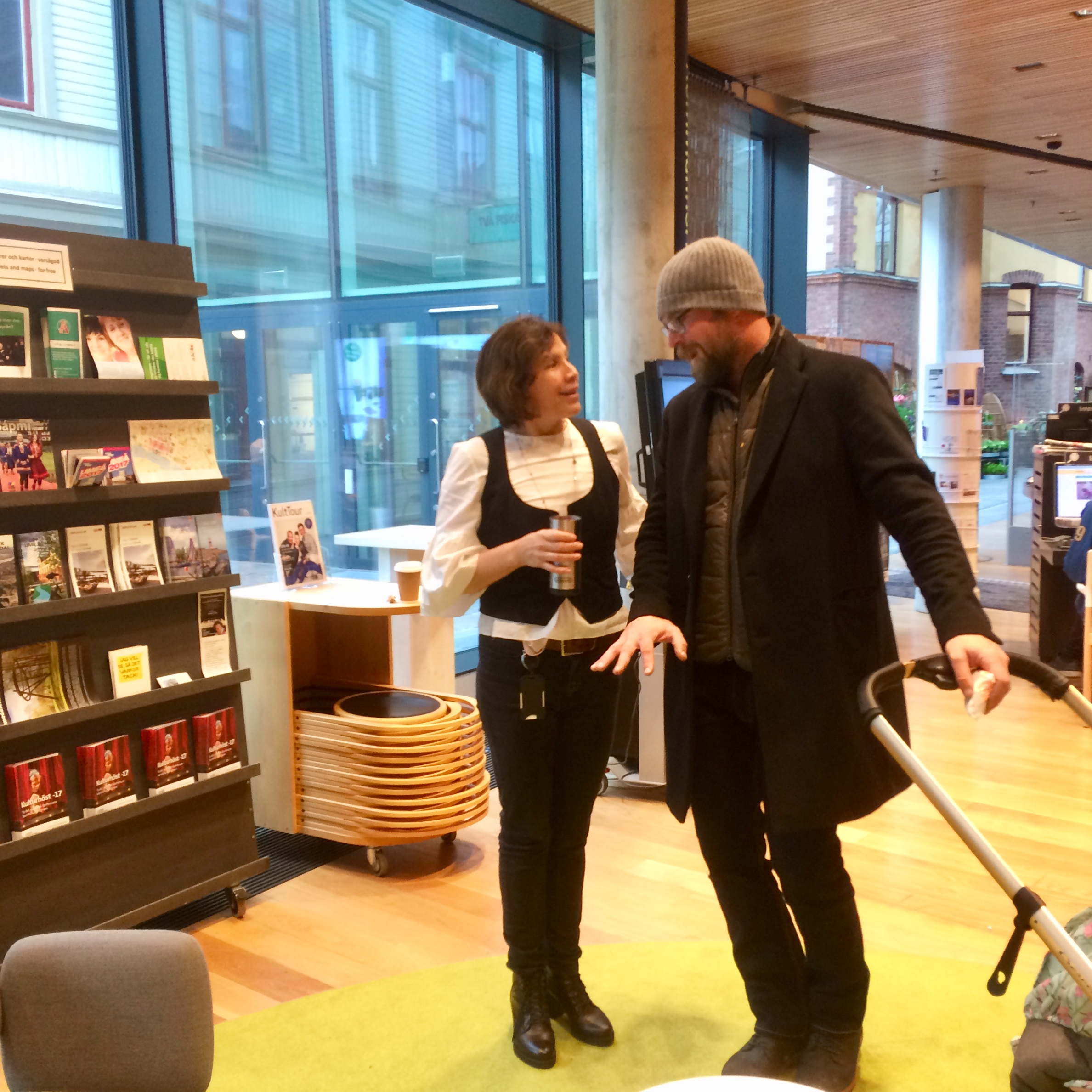 Foto av Linus Cadavid-Stridh och Emil Romano i Kommunhörnan på Väven.