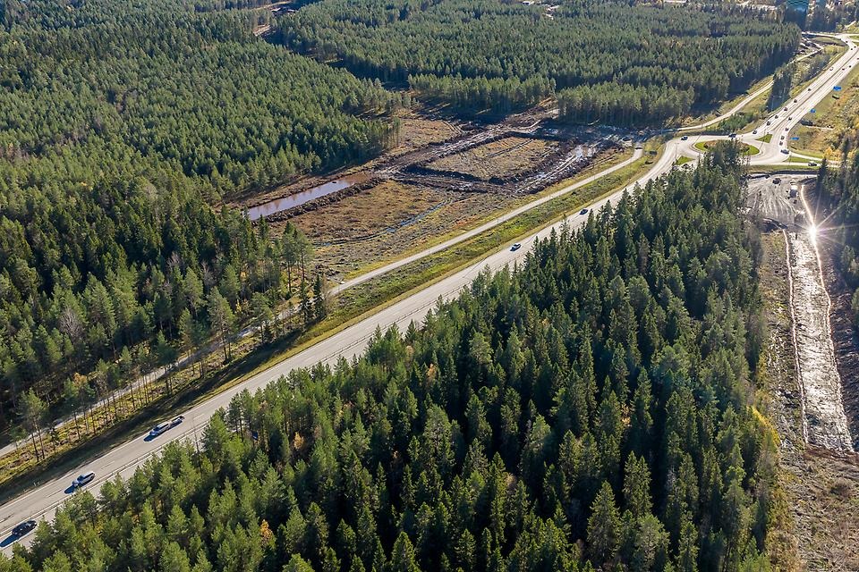 Markarbetet där Umeå östra brandstation ska byggas har startat. På bilden syns Universitetsrondellen vid Kolbäcksvägen.