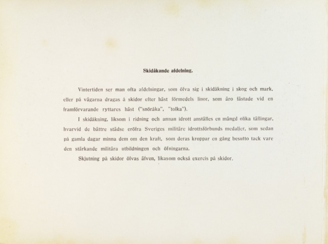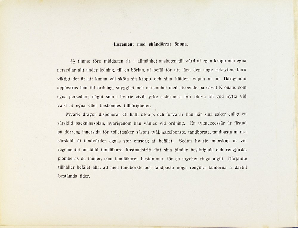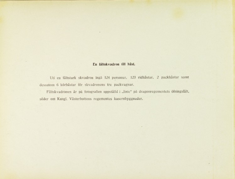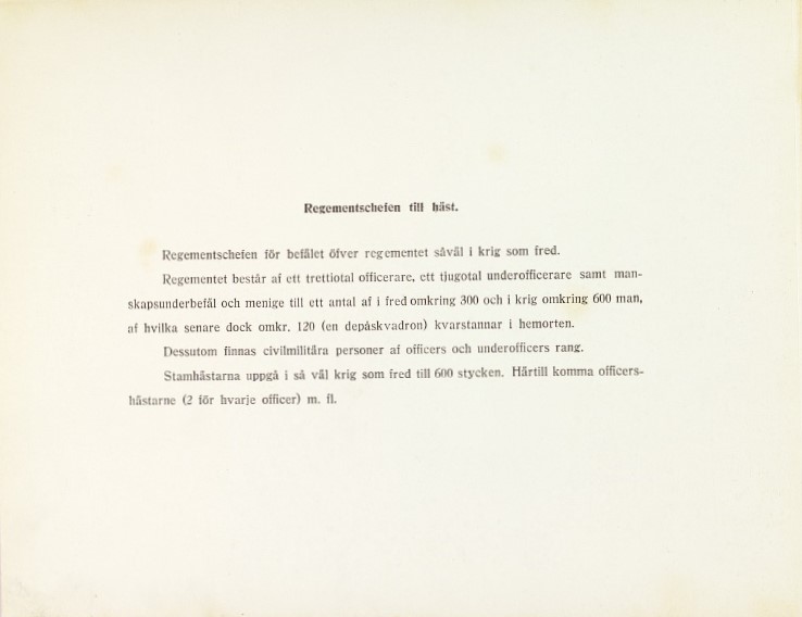 Boken "Kungl. Norrlands dragonremente i ord och bild" från 1911 ger en insyn i livet på regementet i början av 1900-talet. Här hittar du ett urval från boken där du kan klicka på bilderna för att se större versioner. Boken i sin helhet går att hitta i elektroniskt format via Kungliga biblioteket, där boken skannats in.