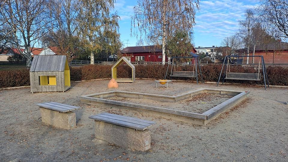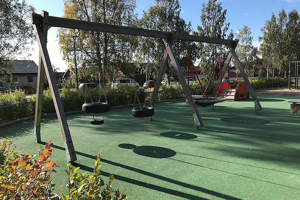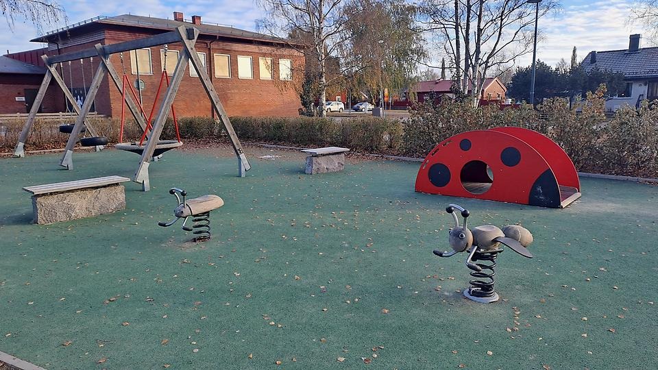 I stadsdelsparken finns lekutrustning i form av
