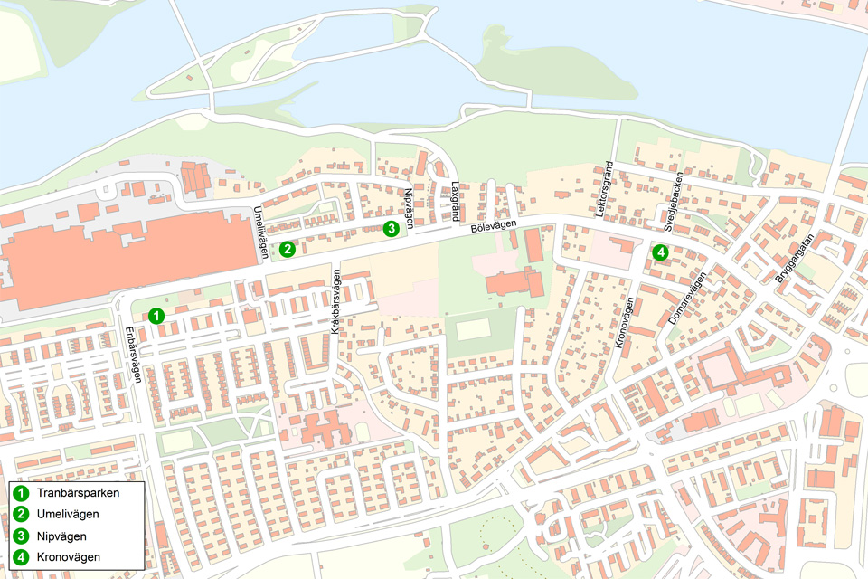 I korsningen Umelivägen och Bölevägen finns en minipark.