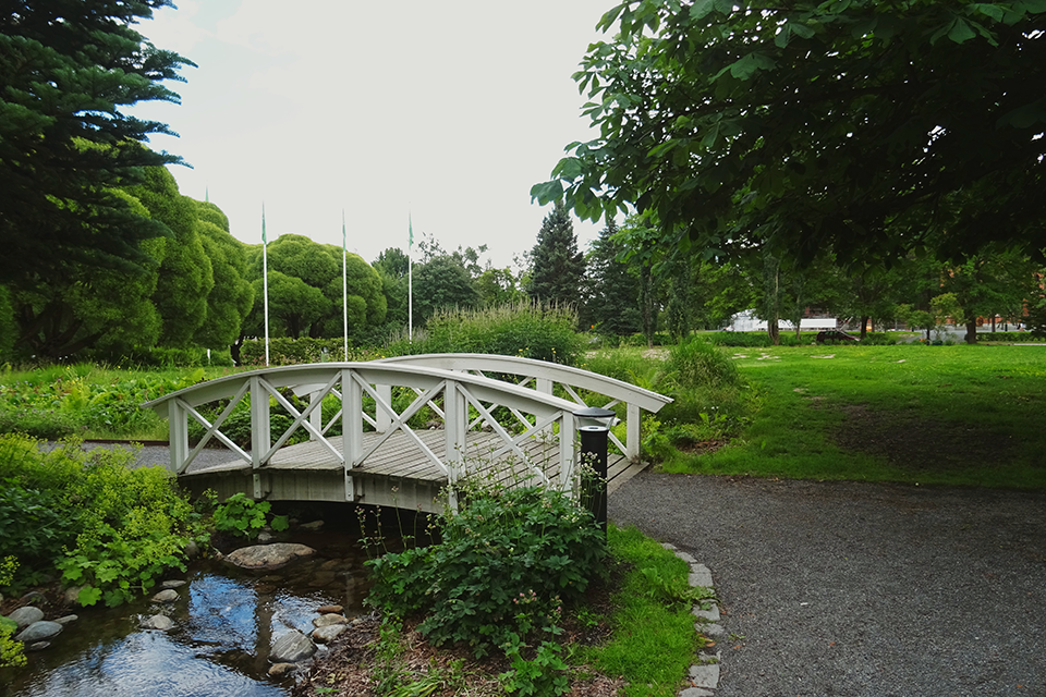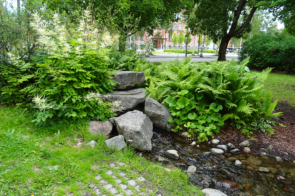 - en konstgjord bäck som ringlar sig genom parken